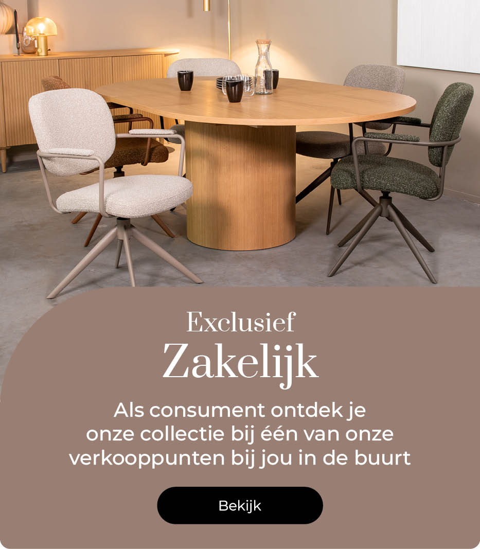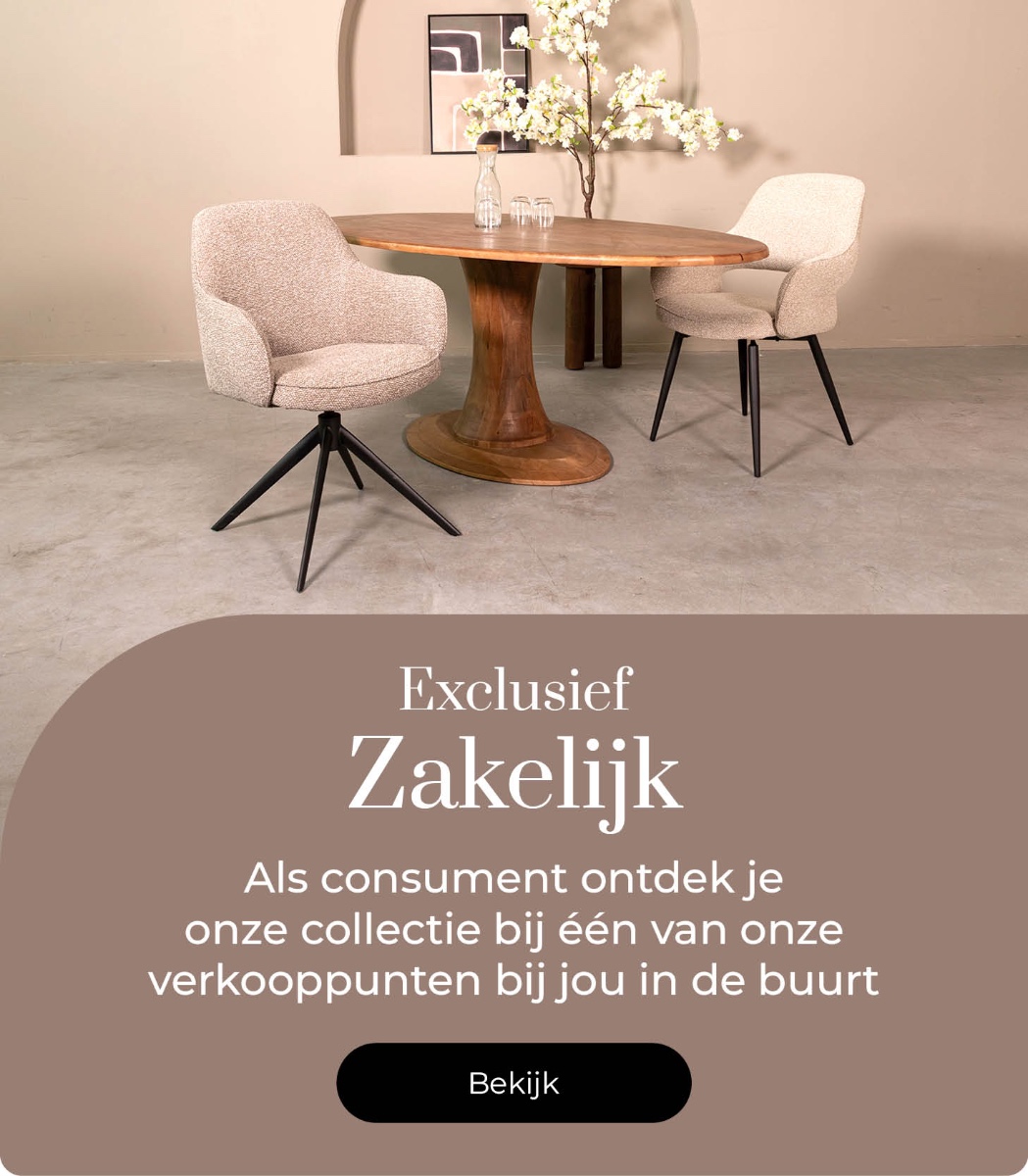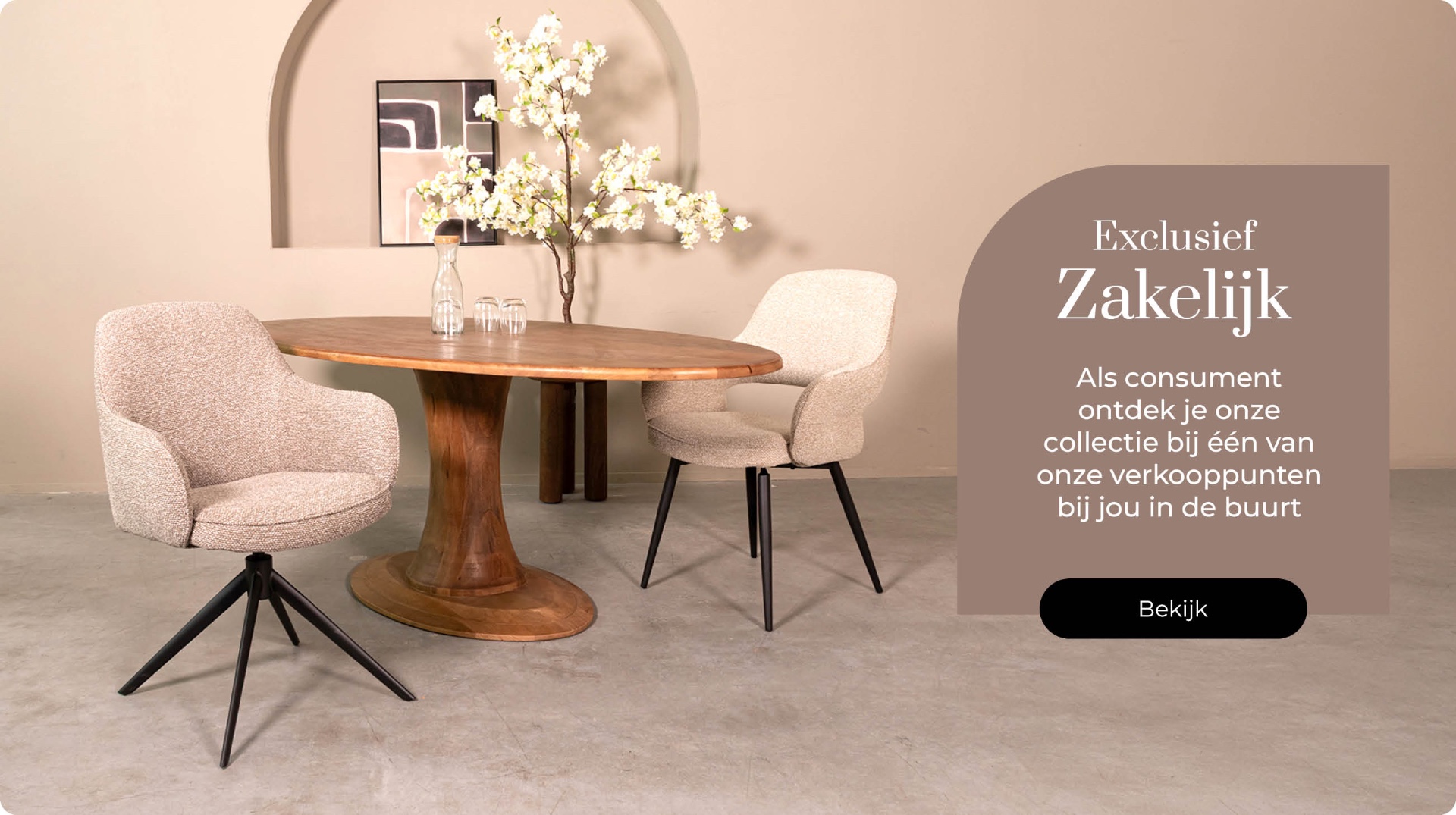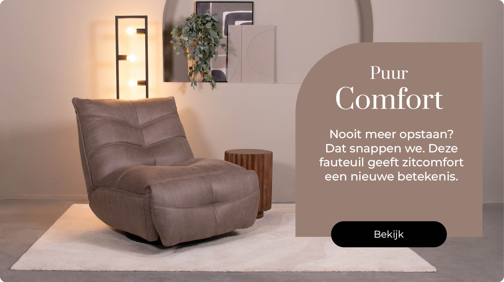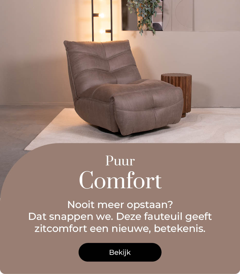Ontdek onze collectie, waarmee wij de laatste woontrends toegankelijk maken, voor íédereen. Bij ons vind je een uitgebreid assortiment aan hoogwaardige banken, de leukste eetkamerstoelen, zachte fauteuils, luxe kasten en gezellige verlichting en decoratie. Bovendien is alles op voorraad, waardoor jij nooit lang hoeft te wachten op jouw nieuwe aanwinst!